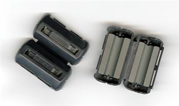 Clip on ferrite choke to suppress radio frequency noise.
